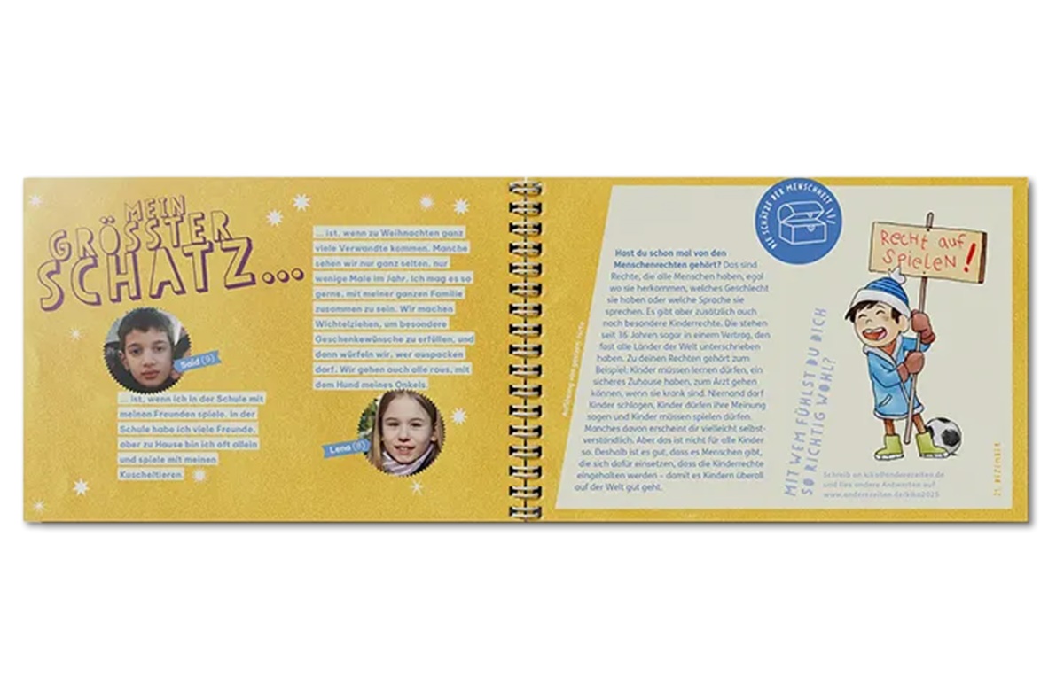 Unser Kinderkalender soll Freude machen! Denn wer Freude an einer Sache hat, der wird auch neugierig: auf Advent, Weihnachten und was sich in dieser besonderen Zeit zwischen dem Vorabend des Ersten Advent und dem 6. Januar alles entdecken lässt. Schmökern, basteln, rätseln, staunen und lachen können Kinder im Grundschulalter. Ochs und Esel begleiten sie an jedem Tag mit einem Witz. Samstags erzählen in diesem Jahr Personen aus der biblischen Weihnachtsgeschichte ihre besonderen Erlebnisse. Auf den Sonntagsseiten entdecken Kinder die Schätze der Menschheit. Natürlich darf sich so ein Kalender für Kinder nicht einfach durchblättern lassen. Die Kleinen müssen die Seiten erst auftrennen – das erhöht die Spannung. Und am Nikolaustag gibt es wieder eine Überraschung!