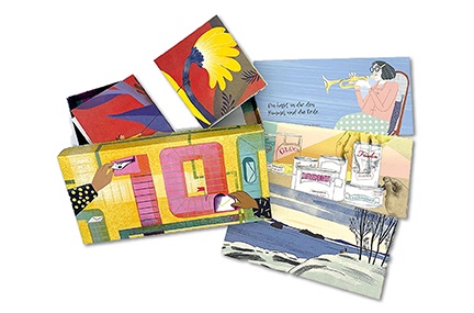 Briefkartenset »10 Jahre wandeln«, 10 Klappkarten DIN A lang mit farbigen Illustrationen und passenden Umschlägen