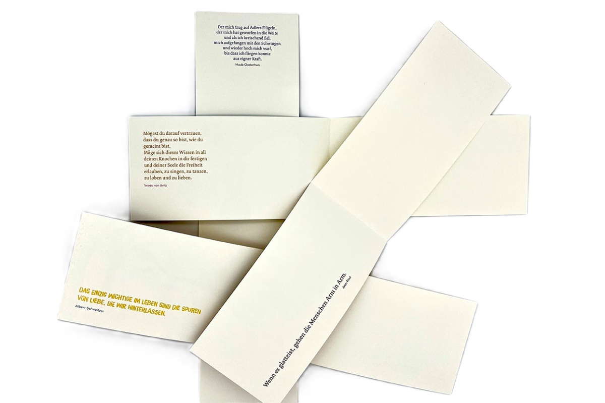 Unser Fastenwegweiser wandeln wird 10 Jahre alt. Zehn der schönsten Illustrationen haben wir ausgesucht, mit ausgewählten Zitaten aus wandeln ergänzt und daraus ein Briefkartenset mit zehn hochwertigen Klappkarten und dazu passenden Umschlägen für ganz unterschiedliche Anlässe zusammengestellt. Verpackt sind Karten und Umschläge in einem wunderschön gestalteten festen Karton.