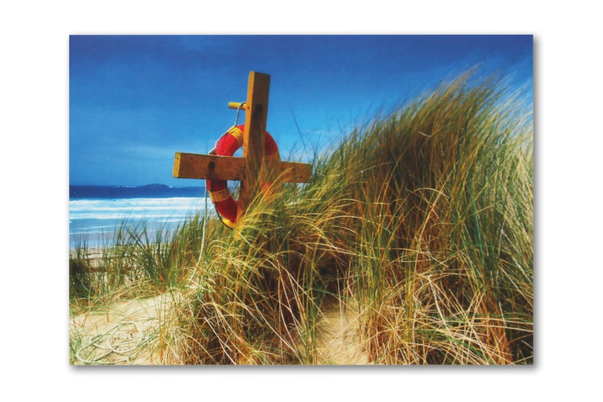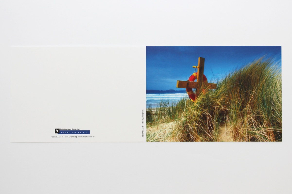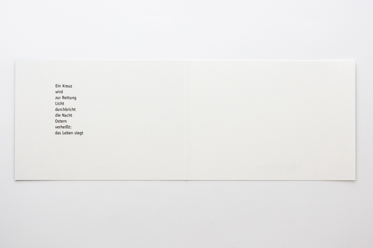 Text der Karteninnenseite: Ein Kreuz wird zur Rettung Licht durchbricht die Nacht Ostern verheißt: das Leben siegt