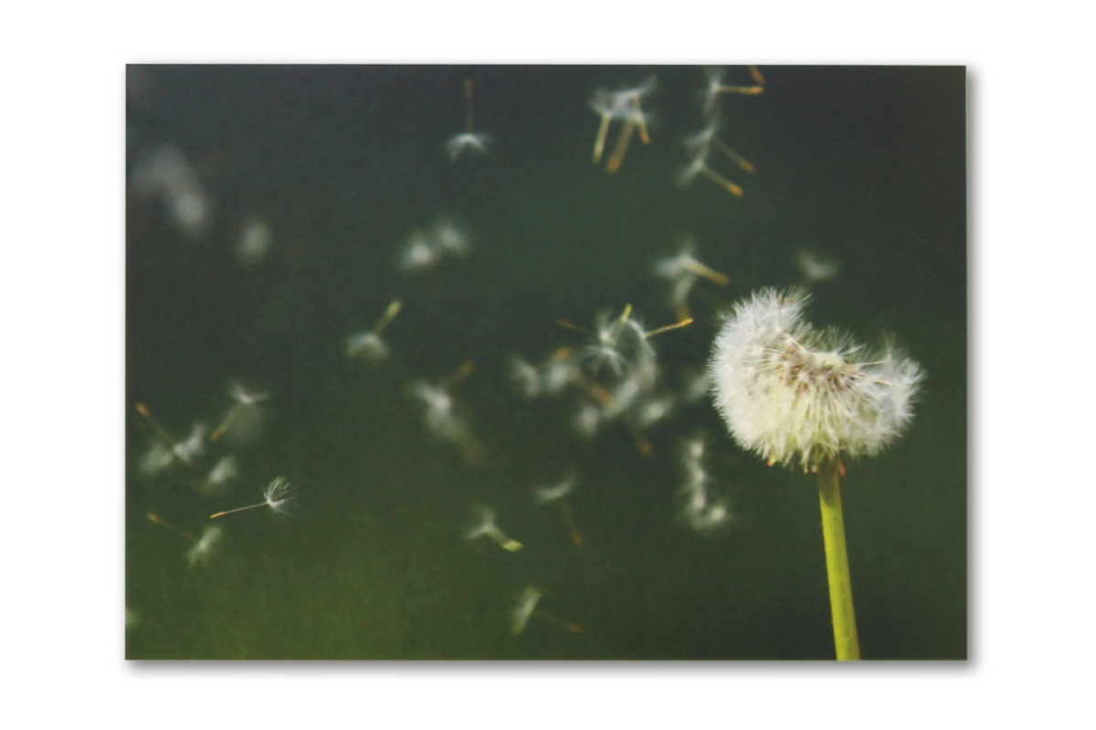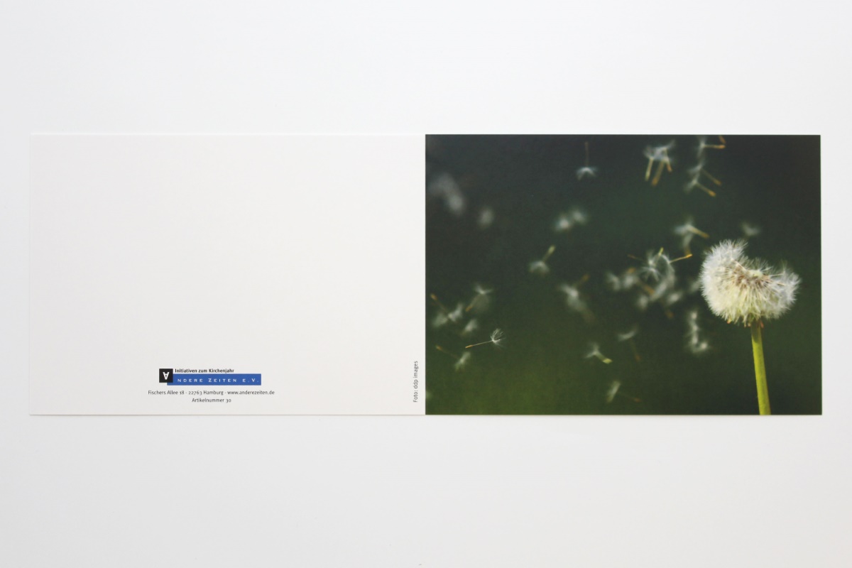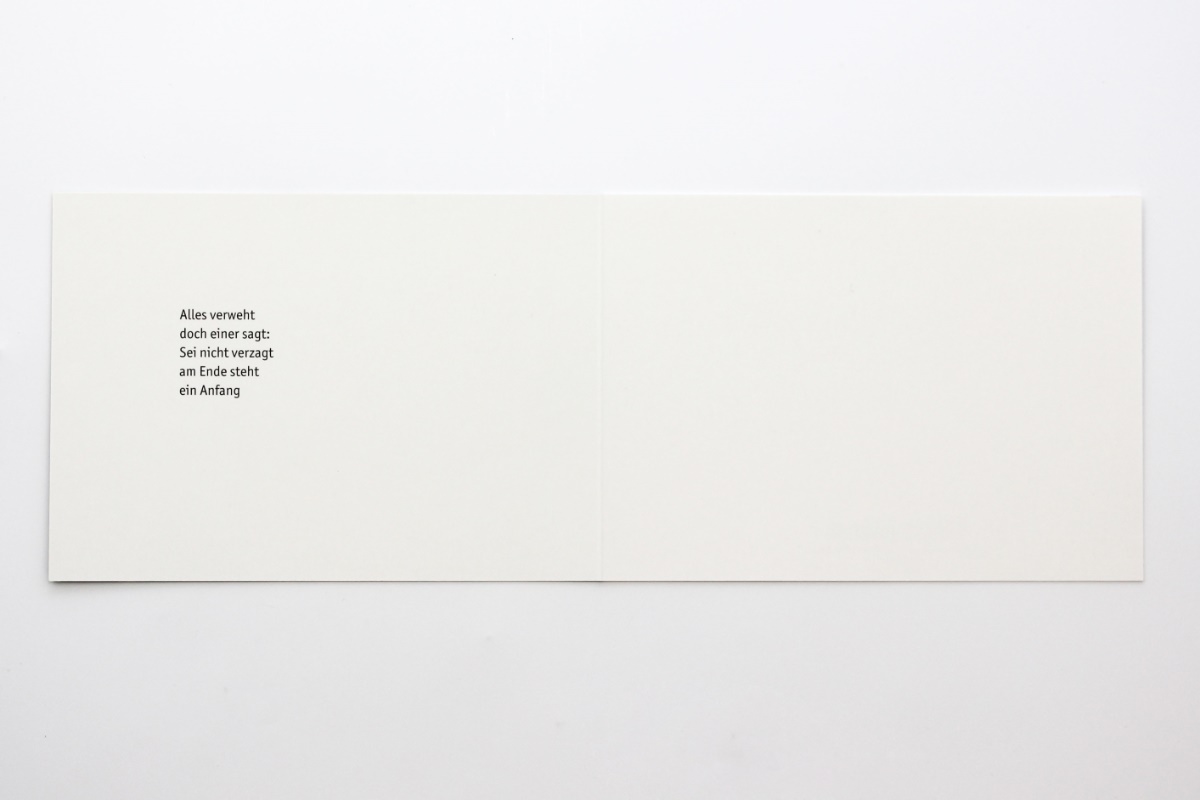 Text der Karteninnenseite: Alles verweht doch einer sagt: Sei nicht verzagt am Ende steht ein Anfang