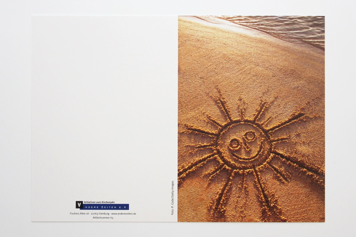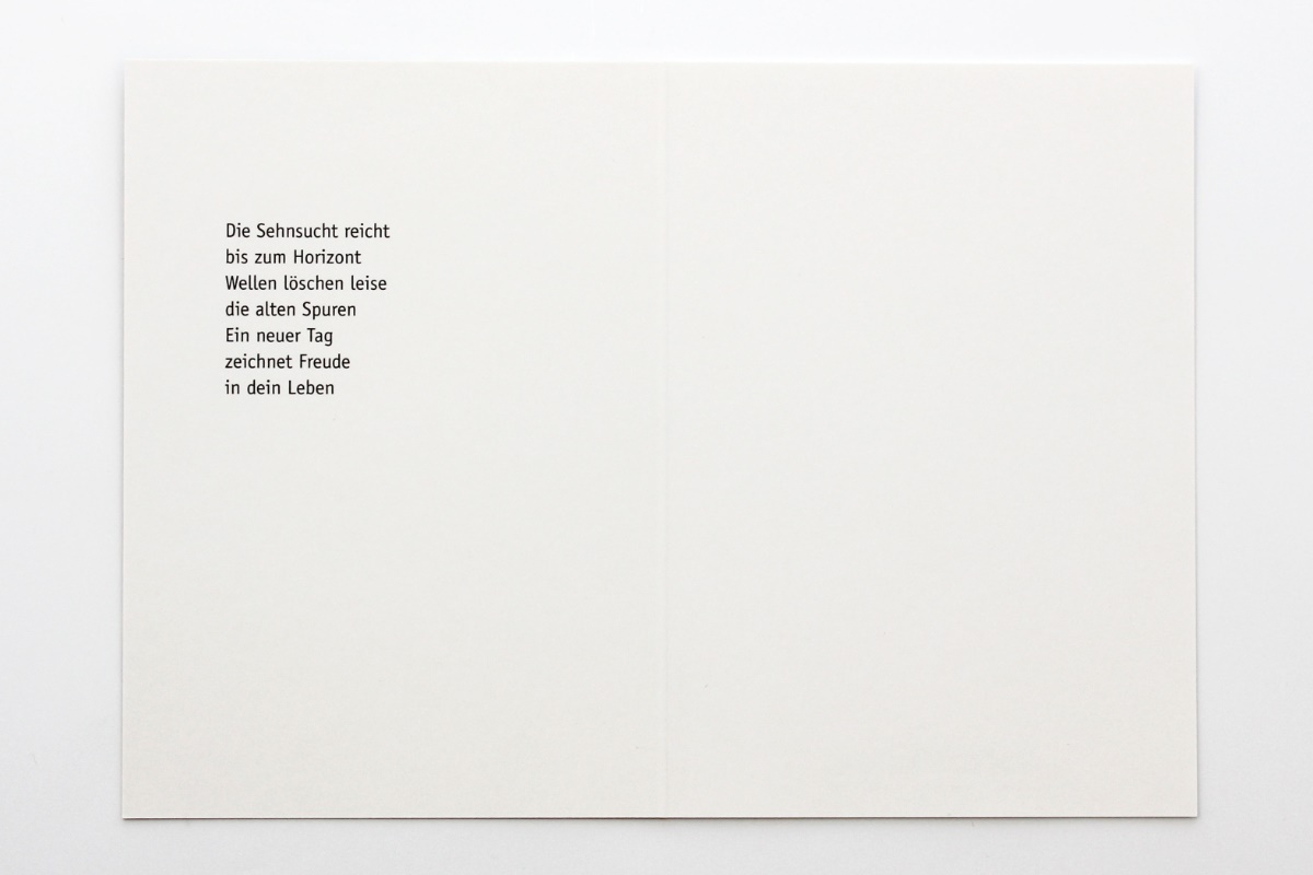 Text der Karteninnenseite: Die Sehnsucht reicht bis zum Horizont Wellen löschen leise die alten Spuren Ein neuer Tag zeichnet Freude in dein Leben