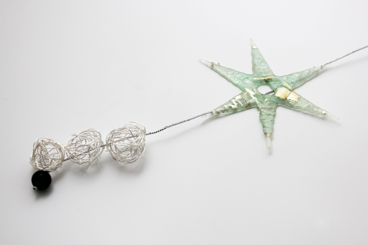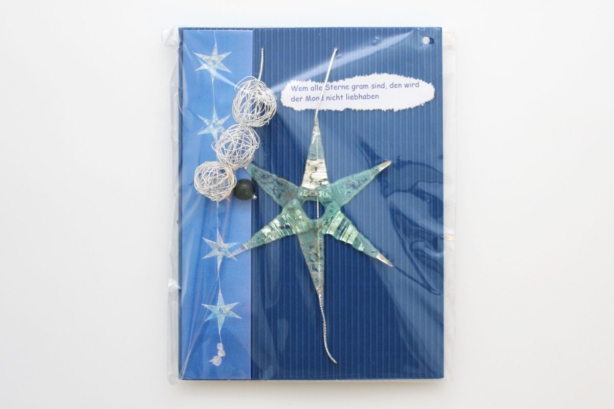 Girlande aus Recycling-CDs gefertigt, besteht aus 5 Sternen.