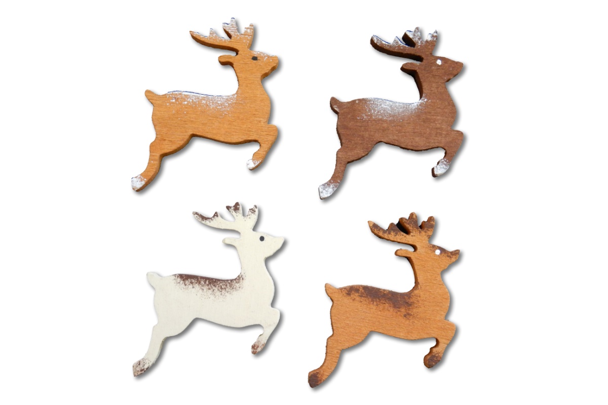Die Rentiere sind handgefertigt aus Pappelsperrholz und sind mit Acrylfarbe handgemalt. Auch als Christbaumschmuck geeignet.