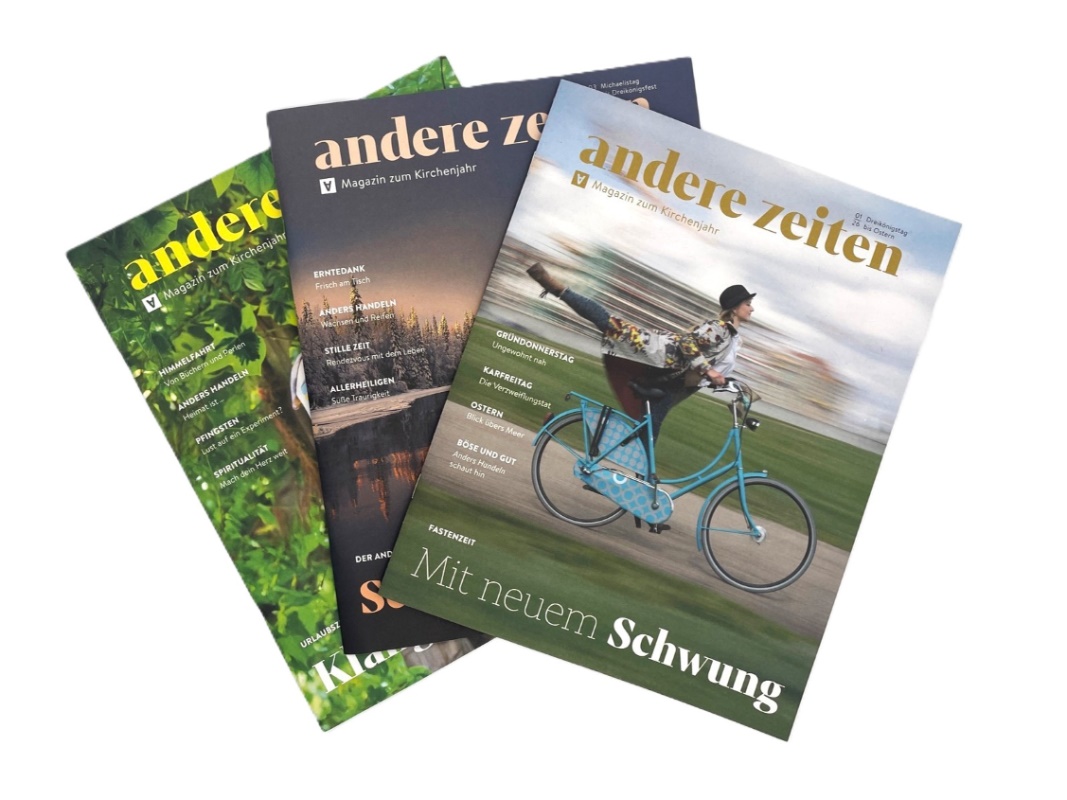 Das Magazin Andere Zeiten begleitet Sie in digitaler Form zum Lesen auf dem Computer, Tablet oder Smartphone durch das Kirchenjahr (ca. Ende Januar, Mai und September).